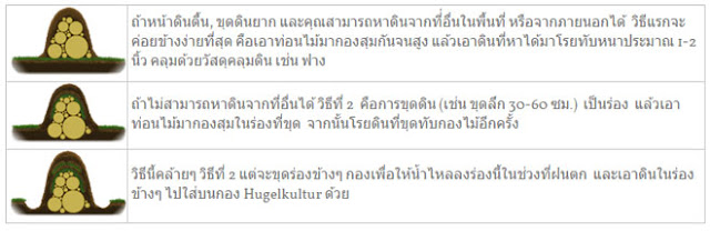 “มันช่างเป็นภูมิปัญญาที่สุดทึ่งจริง ๆ ครับ กับ การเอาชนะเหนือธรรมชาติได้ถึงขนาดนี้”ส่วนวิธีการทำนั้นก็แสนจะง่ายดายและมีหลายวิธี ตามสภาพพื้นดิน และความต้องการของผู้ปลูกครับ โดยมีรายละเอียดดังนี้ครับ