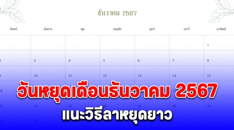 สำหรับวันหยุดในเดือน ธันวาคม 2567 มีดังนี้
