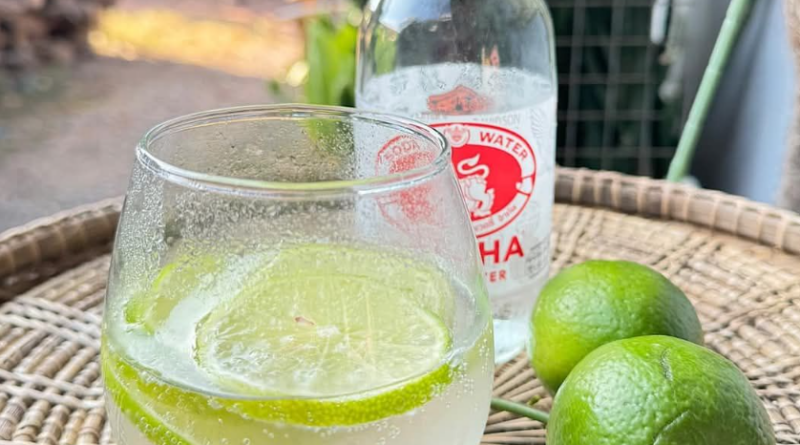 มะนาว 1 ลูก ฝานบางๆ เทโซดาใส่ 1 แก้ว