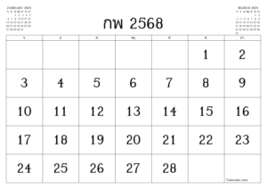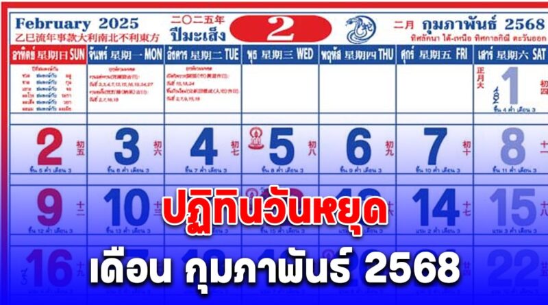ปฏิทินวันหยุด เดือน กุมภาพันธ์ 2568