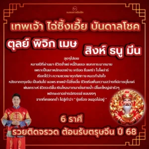 “ดูดวงวันนี้” เข้าสู่เทศกาลตรุษจีน 2568 ทำให้สายมูหลายคนไม่พลาดที่จะตรวจเช็กดวงชะตาว่าจะเป็นอย่างไรบ้าง ล่าสุดทางด้านนักพยากรณ์ดัง หมอบอย เคลียร์ชัด ทำนายดวง 6 ราศี รวยติดจรวด ต้อนรับตรุษจีนปี 68 เทพเจ้าไฉ่ซิ้งเอี้ย บันดาลโชคพ้นเคราะห์ เงินไหลมาเทมาดั่งสายน้ำ มีโชคใหญ่เข้ารัวๆ จากที่เคยตกต่ำ จะรุ่งเรืองจนฉุดไม่อยู่