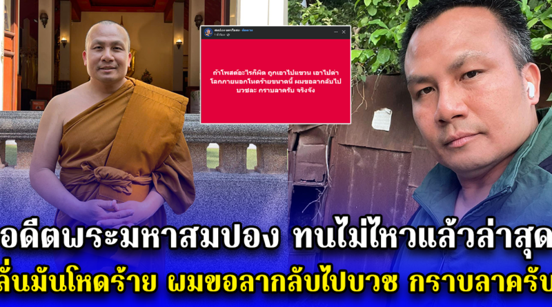 อดีตพระมหาสมปอง ทนไม่ไหวแล้วล่าสุด ลั่นมันโหดร้าย ผมขอลากลับไปบวช กราบลาครับ