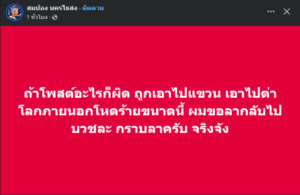 ล่าสุด สมปอง นครไธสง ไดอ้เคลื่อนไหวต่อว่า ถ้าโพสต์อะไรก็ผิด ถูกเอาไปแขวน เอาไปด่า โลกภายนอกโหดร้ายขนาดนี้ ผมขอลากลับไปบวชละ กราบลาครับ จริงจัง