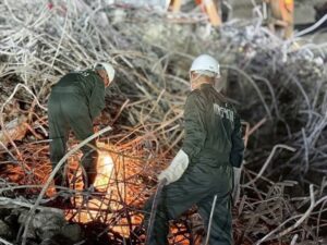 ระหว่างที่ขนย้ายเศษเหล็ก เศษปูน ออกจากพื้นที่ เราจะใช้กู้ภัย 57 นาย และสุนัข K-9 จำนวน 5 ตัว เดินแถวเป็นหน้ากระดาน เพื่อทำการตรวจตามเศษซากต่างๆ ทั้งช่วงเช้า และช่วงเย็น เพื่อหาชิ้นส่วนของมนุษย์ ซึ่งจะทำการตรวจสอบอย่างรอบคอบที่สุด