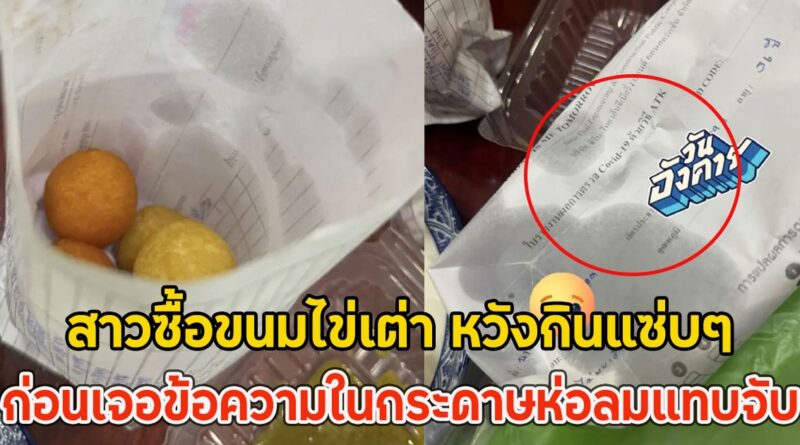 สาวซื้อขนมไข่เต่า หวังกินแซ่บๆ ก่อนเจอข้อความในกระดาษห่อลมแทบจับ