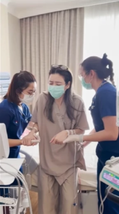 ช่วงหนึ่งของคลิปยังเผยภาพเอ๋ พรทิพย์ ขณะนอนรักษาตัว โดยเธอเอ่ยด้วยสีหน้าเจ็บปวดว่า