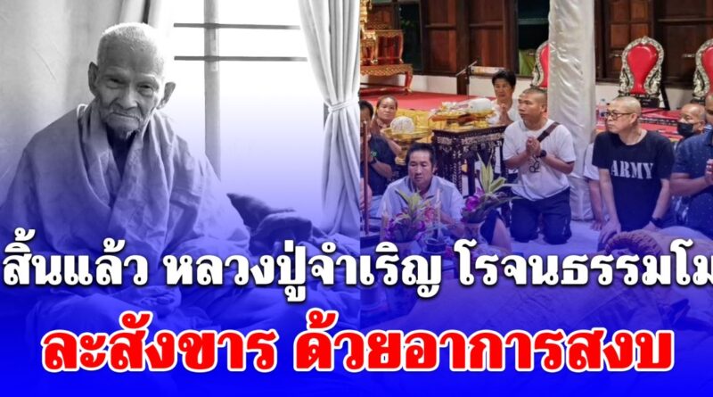 สิ้นแล้ว หลวงปู่จำเริญ โรจนธรรมโม ลูกศิษย์หลวงพ่อรุ่ง วัดท่ากระบือ ละสังขาร ด้วยอาการสงบ