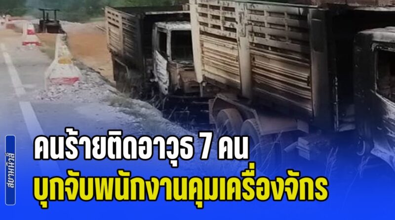อุกอาจ! คนร้ายติดอาวุธ 7 คน บุกจับพนักงานคุมเครื่องจักร มัดมือไพล่หลัง ก่อนจุดไฟเผาทั้งคัน