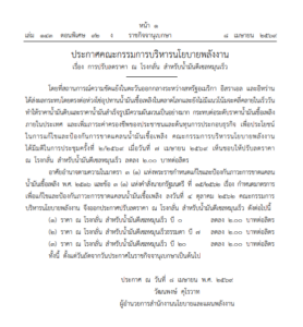 ประกาศระบุว่า โดยที่สถานการณ์ความขัดแย้งดังกล่าวยังไม่มีแนวโน้มคลี่คลายในเร็ววัน ส่งผลโดยตรงต่อเสถียรภาพด้านพลังงาน คณะกรรมการบริหารนโยบายพลังงาน จึงมีมติในการประชุมครั้งที่ 2/2569 เมื่อวันที่ 7 เมษายน 2569 เห็นชอบให้ปรับลดราคา ณ โรงกลั่น สำหรับน้ำมันดีเซลหมุนเร็ว เพื่อบรรเทาผลกระทบและป้องกันการขาดแคลนน้ำมันเชื้อเพลิงในประเทศ