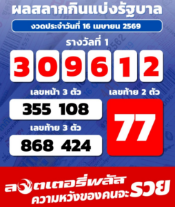 ออกไปเป็นที่เรียบร้อยแล้ว สำหรับการออกรางวัล ประจำวันที่ 16 เมษายน 2569