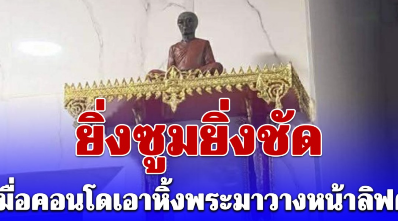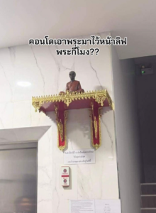 เมื่อคอนโดเอาหิ้งพระมาวางหน้าลิฟต์ ซูมดูใกล้ ๆ พระจากวัดใด