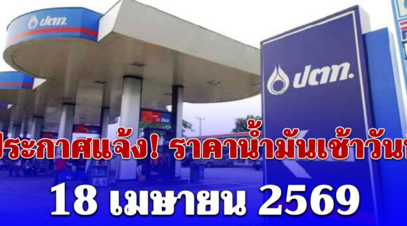 ประกาศแจ้ง! ราคาน้ำมันเช้าวันนี้ 18 เมษายน 2569 เบนซิน-ดีเซล-แก๊สโซฮอล์ ลิตรละเท่าไหร่